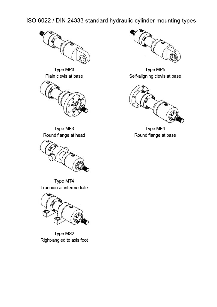 這些代號通常會反映油壓缸的固定方式,例如是否使用腳座、法蘭、耳軸或其他固定方式。每一種安裝方式都有其獨特的結構特點和適用範圍,所以正確地識別和選擇油壓缸的安裝類型對於確保油壓系統的有效運作和壽命是至關重要的。